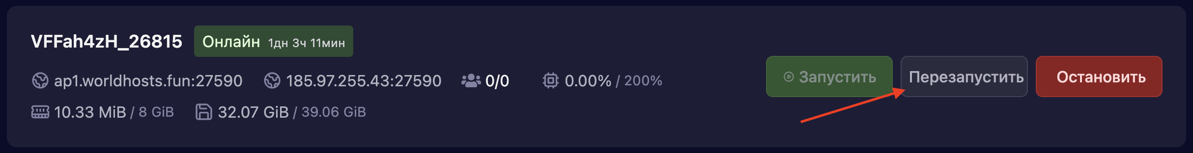 Шаг 3. Перезапускаем сервер для вступления в силу всех изменений.