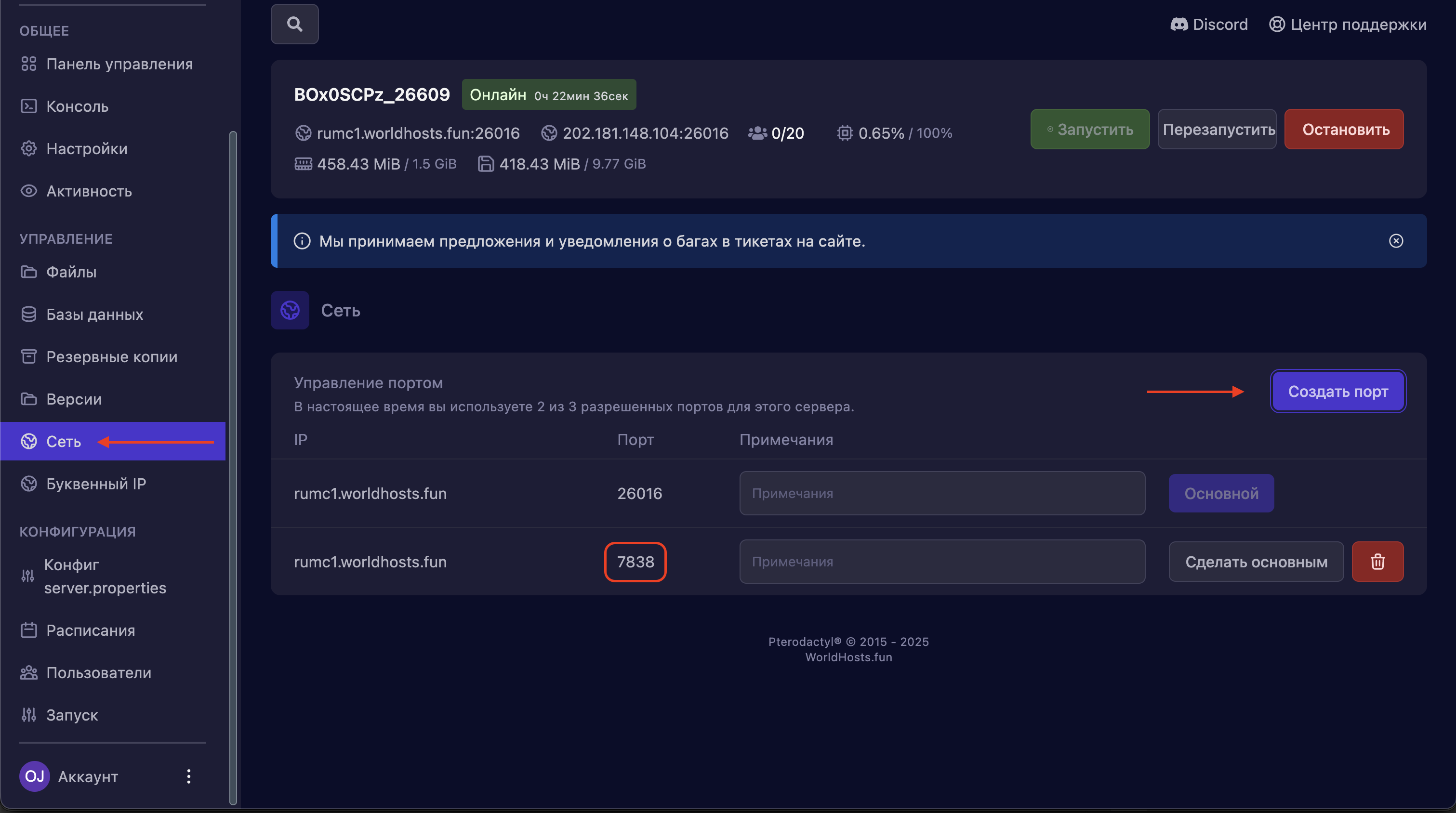 ⚡ Настройка сервера: https://worldhosts.fun/knowledgebase/2/Настройка-сервера