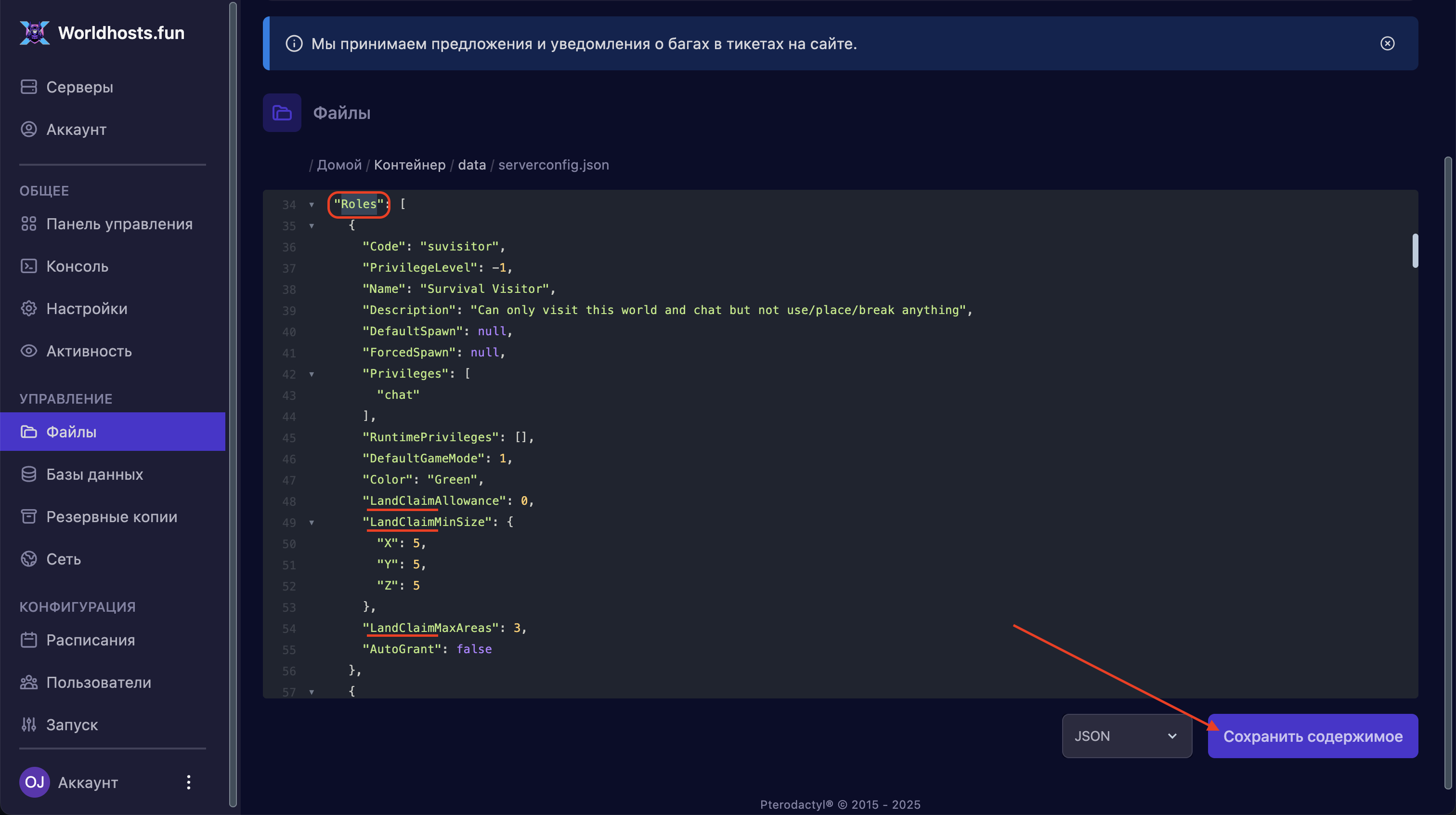 Отличная работа! Настройка системы захвата земель — ключевой шаг к созданию стабильного и дружелюбного сообщества на вашем сервере Vintage Story. Следуя этой инструкции, вы легко настроите надежную защиту для всех ваших игроков. Остались вопросы? Создайте тикет в техподдержку!