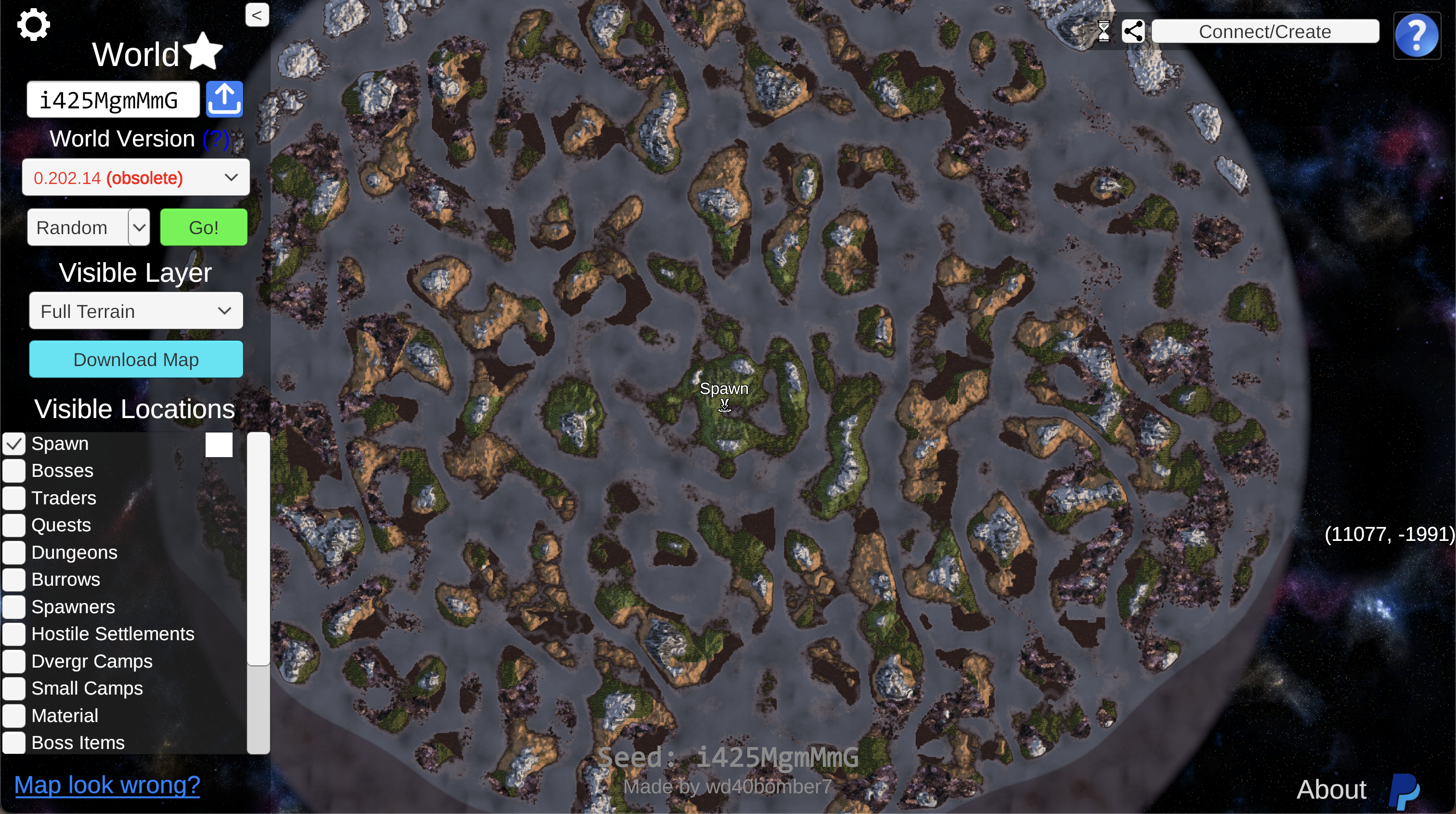 Шаг 3. Перейдите на неофициальный генератор миров Valheim. Загрузите ранее скаченный файл, в нашем случае это WorldHostsValheimServer.fwl. После загрузки начальное состояние мира будет указано ниже. Нажмите на ссылку, чтобы просмотреть полную карту мира.