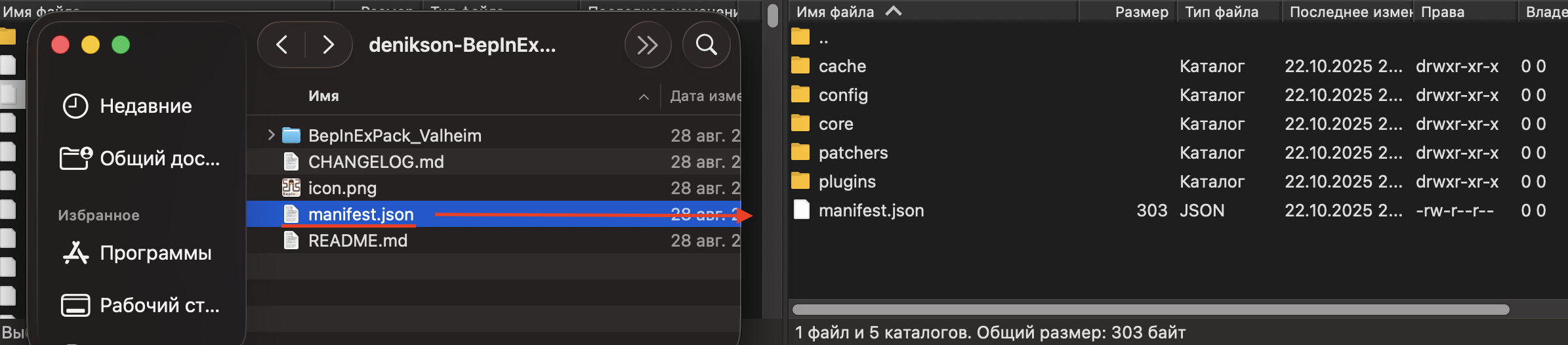 Файл manifest.json устанавливаем в папку BepInEx на сервере.
