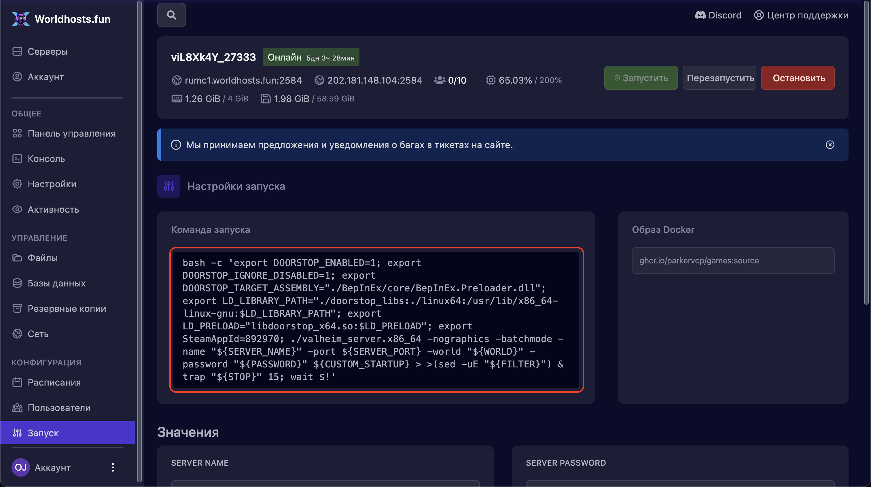 Шаг 3. Далее нужно поменять параметр запуска, делается это через тикет по запросу «Смена параметра запуска для BepInEx».