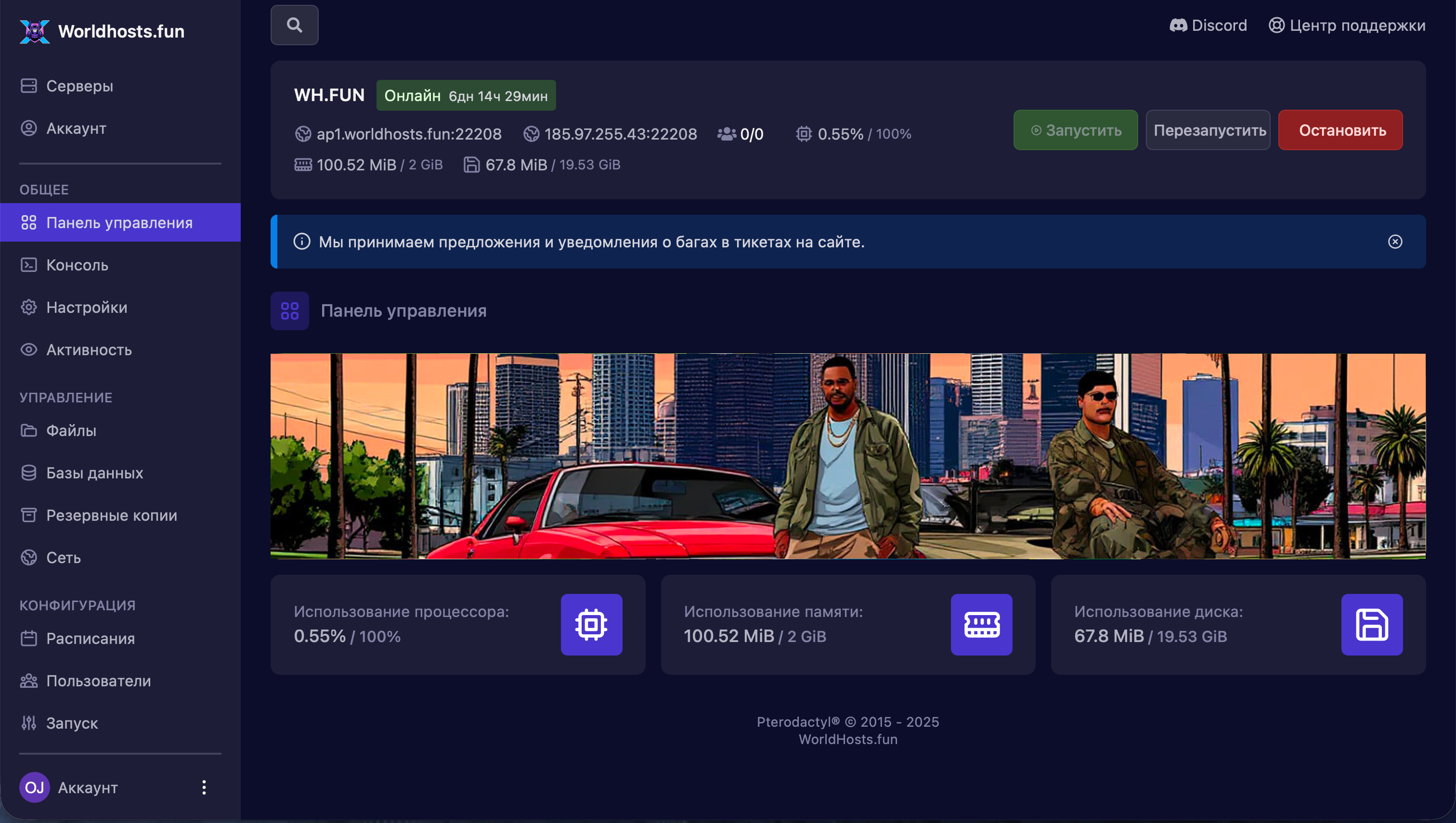 Отлично! Resource Manager предоставляет все необходимые инструменты для гибкой настройки вашего MTA-сервера. Вы можете легко экспериментировать с различными комбинациями модов, создавая уникальный игровой опыт для вашего сообщества. Помните: большинство изменений применяются мгновенно, без необходимости перезапуска сервера. Это позволяет вам оперативно реагировать на потребности игроков и постоянно улучшать ваш проект. Остались вопросы? Создайте тикет на сайте.
