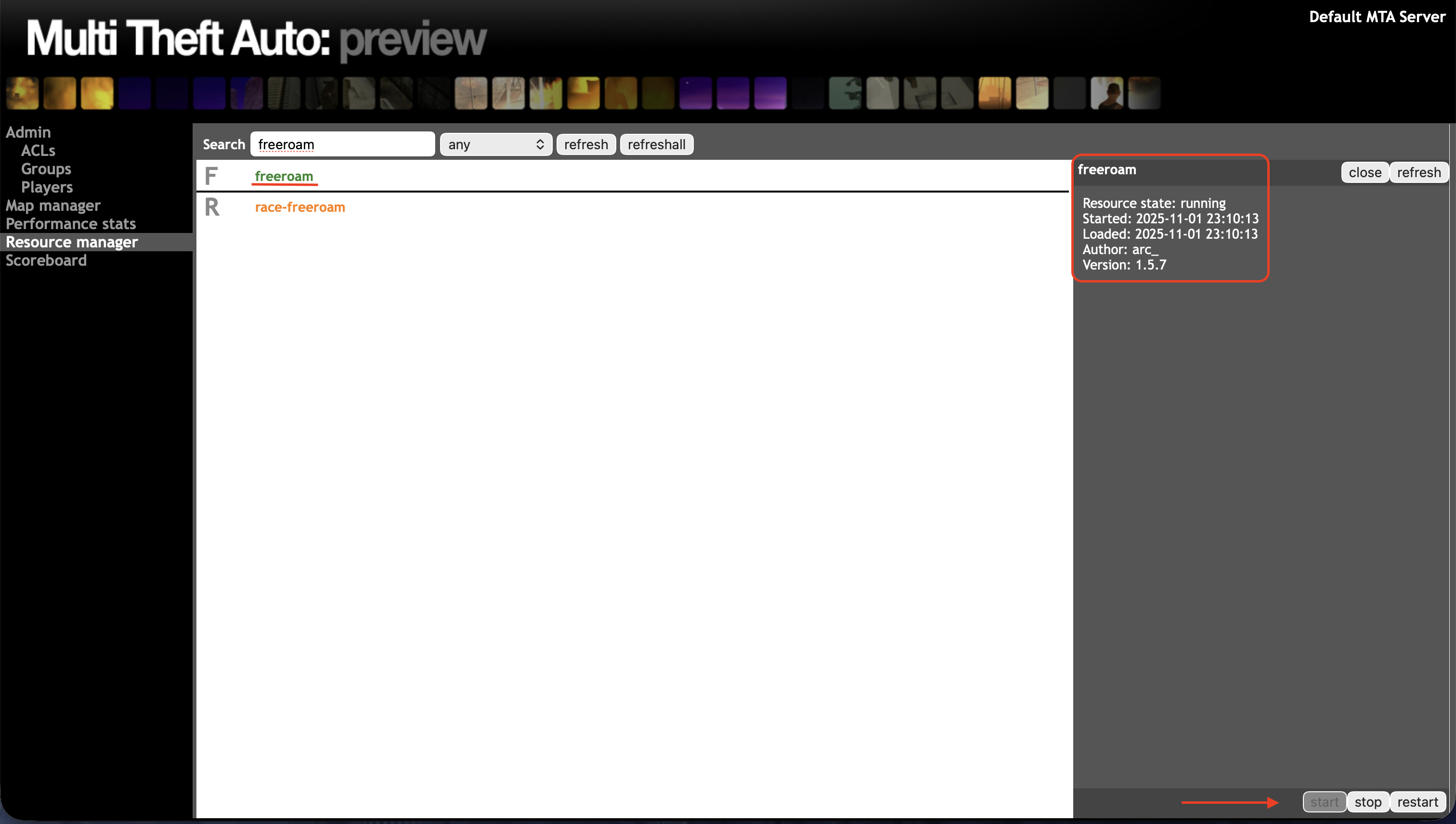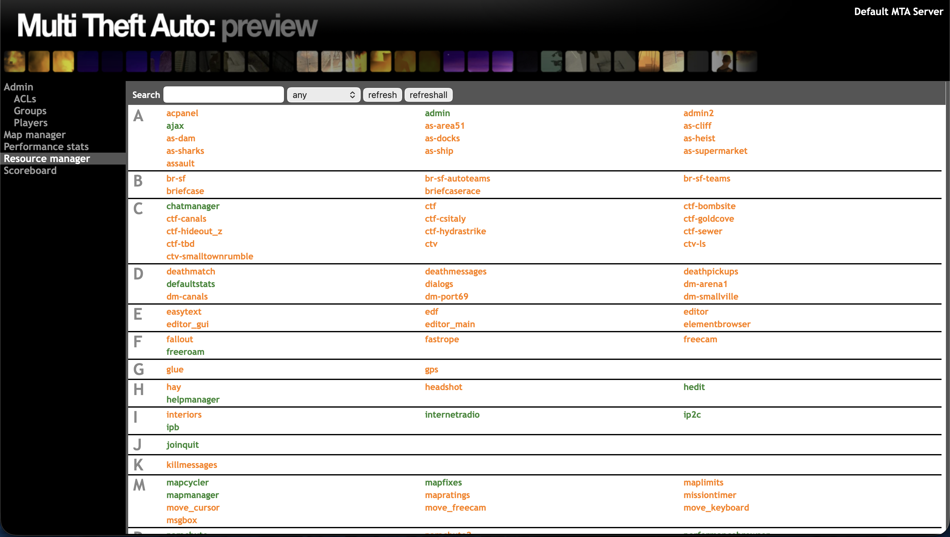 Resource Manager (менеджер ресурсов) — это центральный узел управления всеми модами на вашем сервере. Через него вы можете запускать, останавливать и настраивать любые игровые режимы, карты и вспомогательные скрипты.