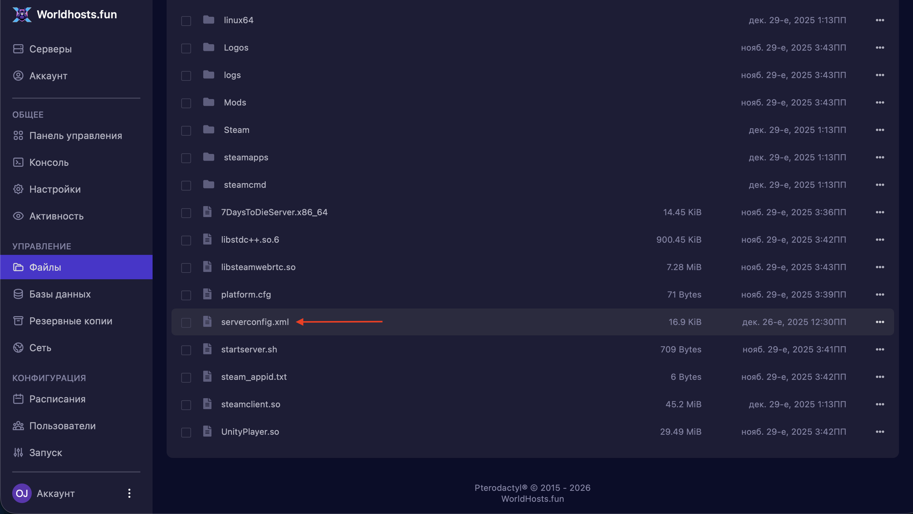 Шаг 2. Пролистываем ниже и открываем файл serverconfig.xml.