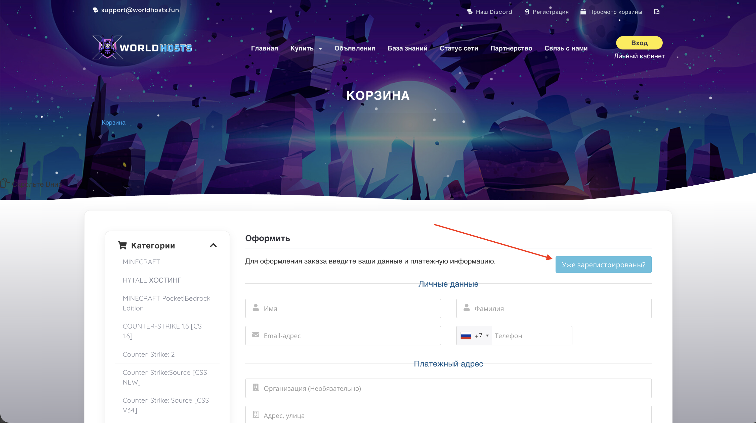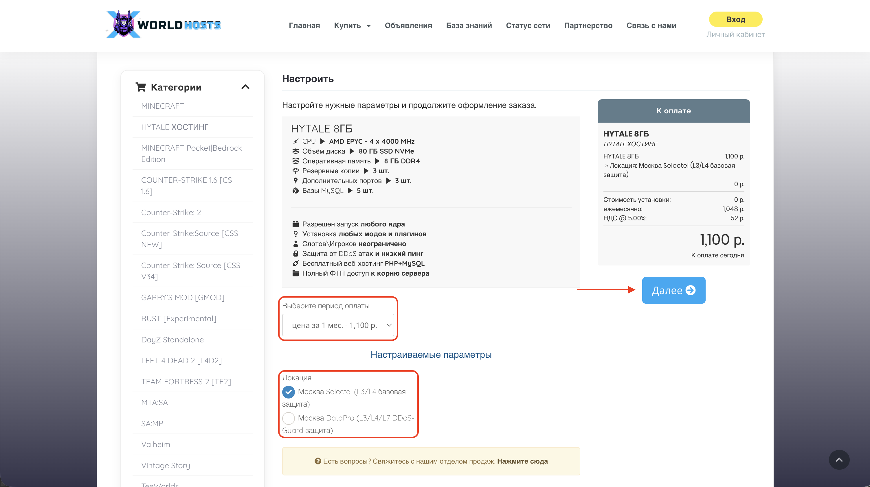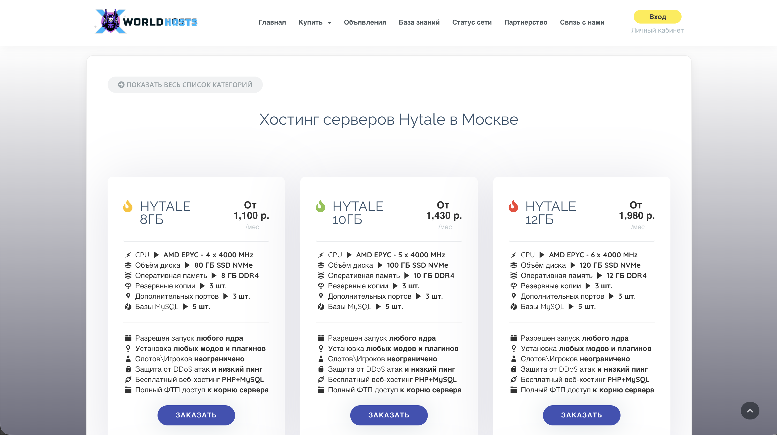 Шаг 1. Открываем страницу: https://worldhosts.fun/store/hytale-hosting