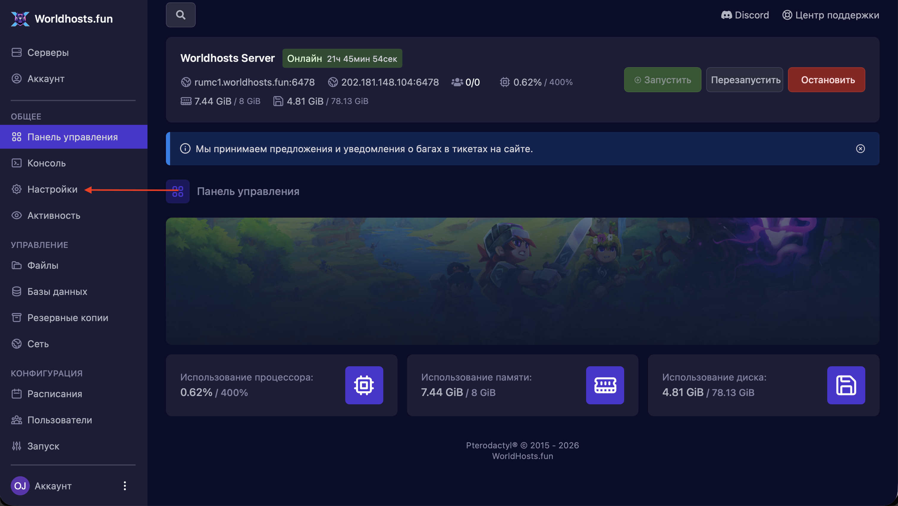 Если ваш сервер отстаёт от актуальной версии, игроки с обновлёнными клиентами не смогут к нему подключиться. В этой инструкции мы подробно расскажем, как правильно и безопасно обновить сервер Hytale у нас на хостинге.