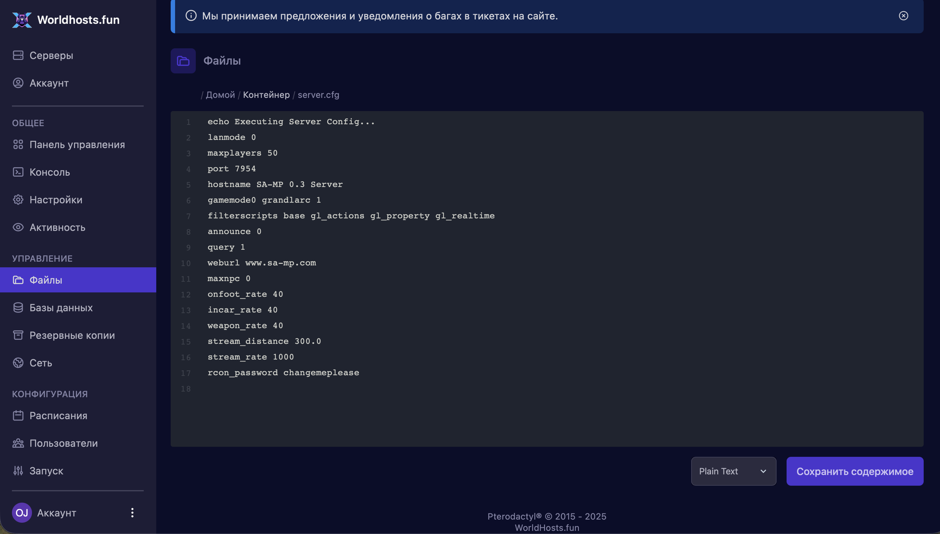 ❤️ Приветствуем Вас, дорогие посетители хостинга - WorldHosts.FUN! Файл server.cfg — это сердце вашего SAMP сервера на хостинге. Именно в этом конфигурационном файле содержатся все ключевые настройки, от которых зависит работоспособность, безопасность и популярность вашего проекта. В этой статье разберем каждый параметр.