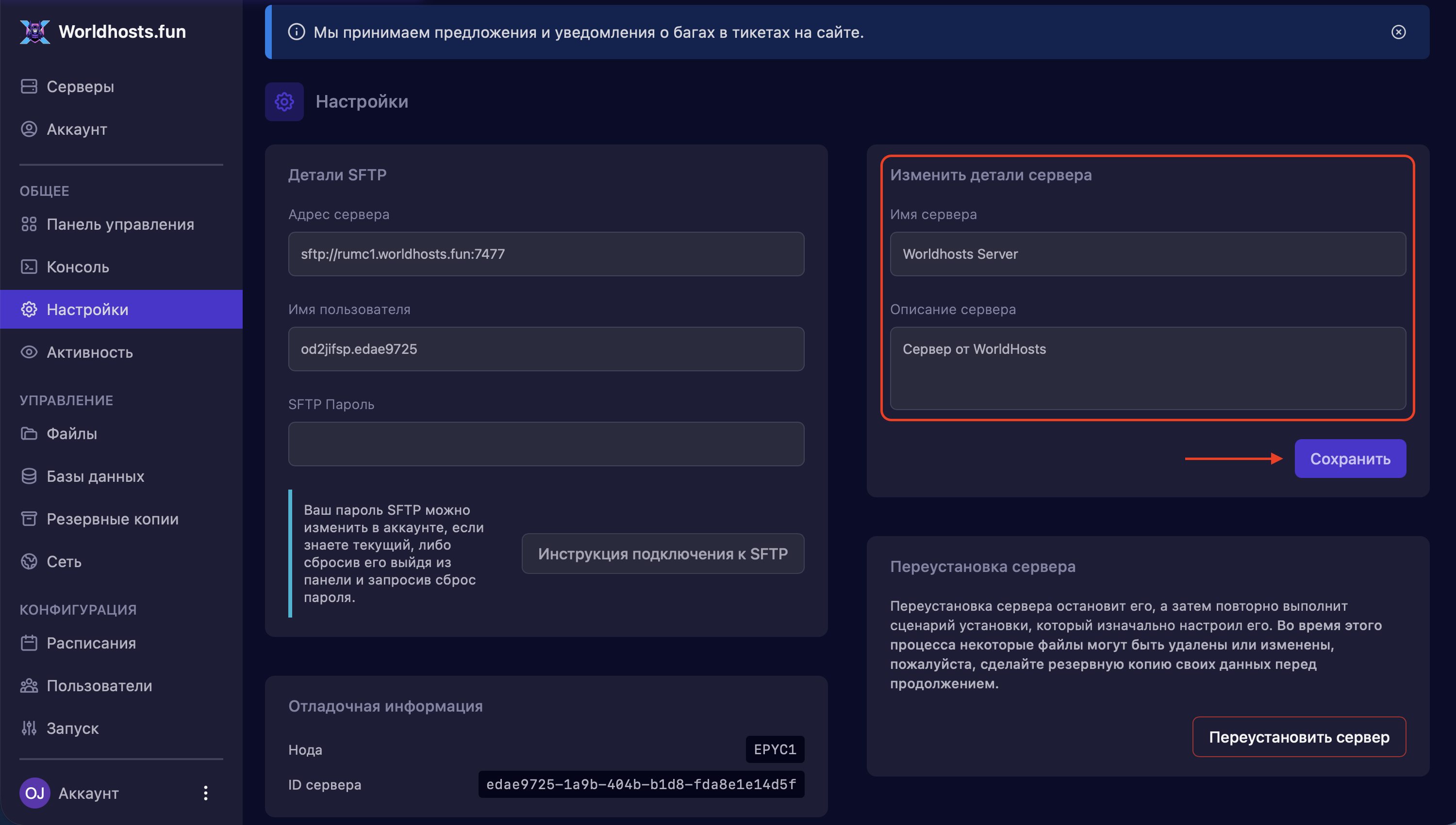 Данное руководство подробно объяснит, как задать уникальное имя и написать описание для вашего сервера.