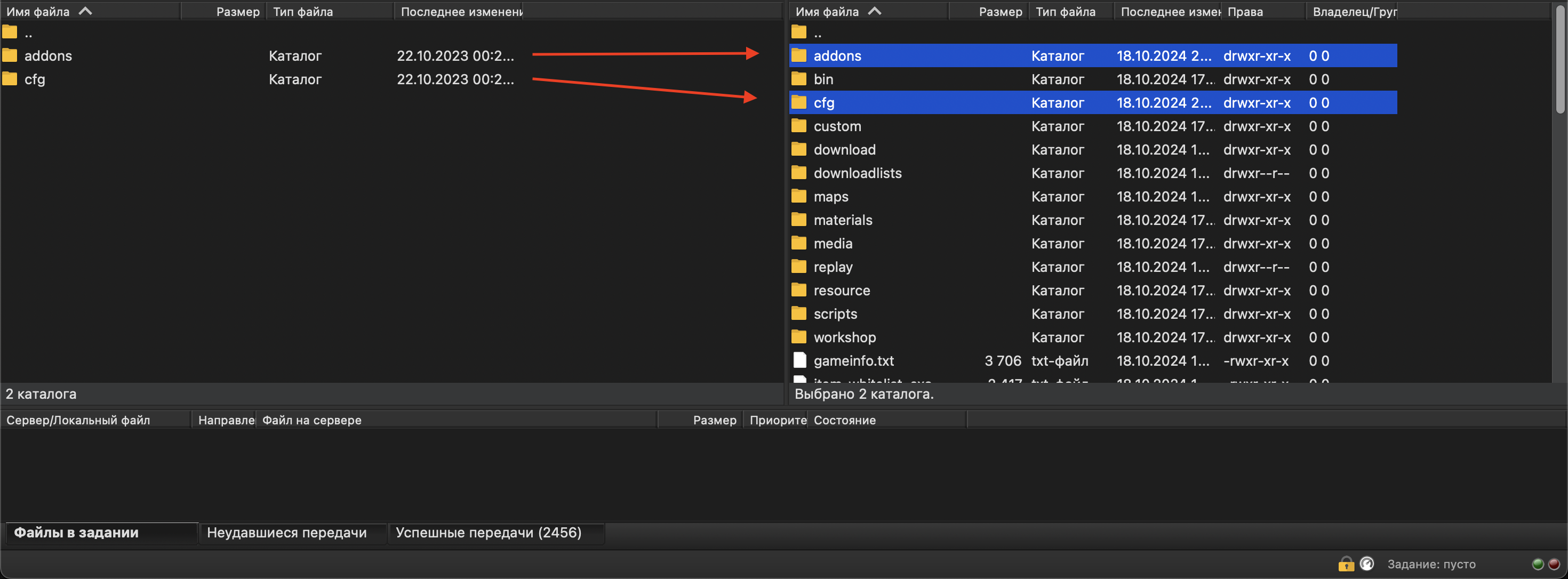 Шаг 3. Копируем все фалы архива в аналогичные папки на сервере в директорию /tf/